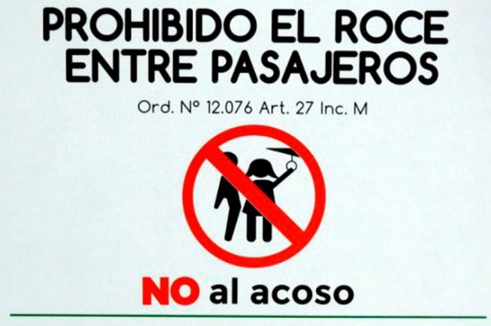 La presidenta de la comisión de Equidad de Género del Concejo, Miriam Acosta, recibió una caja con 2.000 carteles con la leyenda y el símbolo aprobado en la ordenanza Nº 12.076 que establece la advertencia contra el acoso, en estos términos: “Prohibido el roce entre pasajeros”.