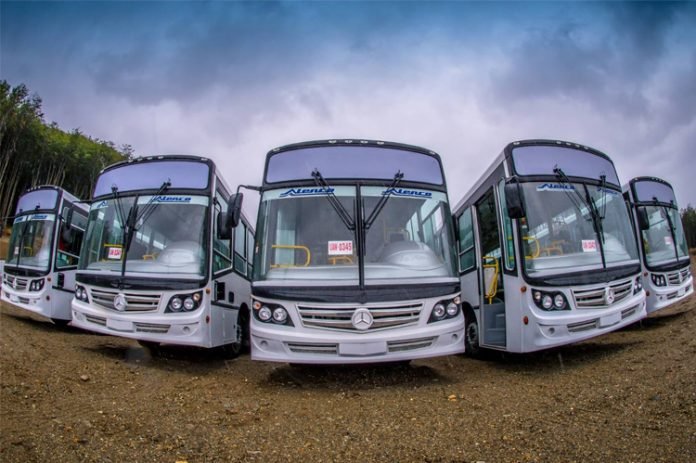 Llegaron a Ushuaia, vía terrestre, los primeros cinco colectivos que formarán parte de la flota con la que la Sociedad del Estado prestará el servicio de transporte público de pasajeros en la ciudad.