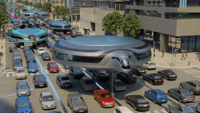 Al ver la imagen lo primero que nos viene a la mente son esas locas y divertidas predicciones futuristas realizadas en el pasado, aquellas que imaginaban que viviríamos en la Luna y tendríamos coches voladores. Pues bueno, la propuesta de transporte público que conoceremos hoy es una de esas locuras que nos quieren vender como futuro, porque vamos, todos queremos vivir ahí, sin importar de qué año estemos hablando.
