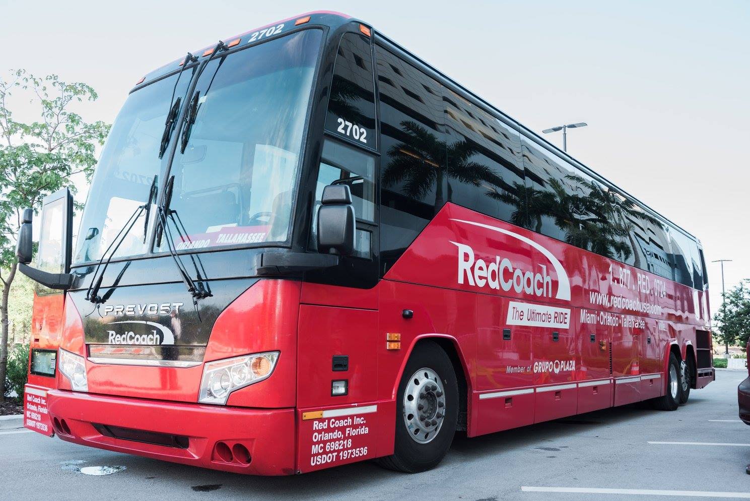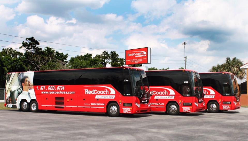 Ahora los distintivos autobuses rojos de Plaza están comenzando a aparecer en las carreteras del sudeste de los Estados Unidos bajo el nombre RedCoach . Pero estas máquinas no son el autobús urbano promedio: autocares de lujo Provost / Volvo de US $ 500,000 con 27 asientos de cuero que se reclinan 140 grados, pantallas LCD con películas de primera ejecución, WiFi a bordo con conectores de 110V en cada asiento, interior y cámaras de seguridad exteriores y un sistema de monitoreo GPS. Atlanta, Miami, Orlando y Tampa se encuentran entre las primeras ciudades con servicio RedCoach, y el sitio web de la compañía ofrece tarifas tan bajas como $ 5 de ida.