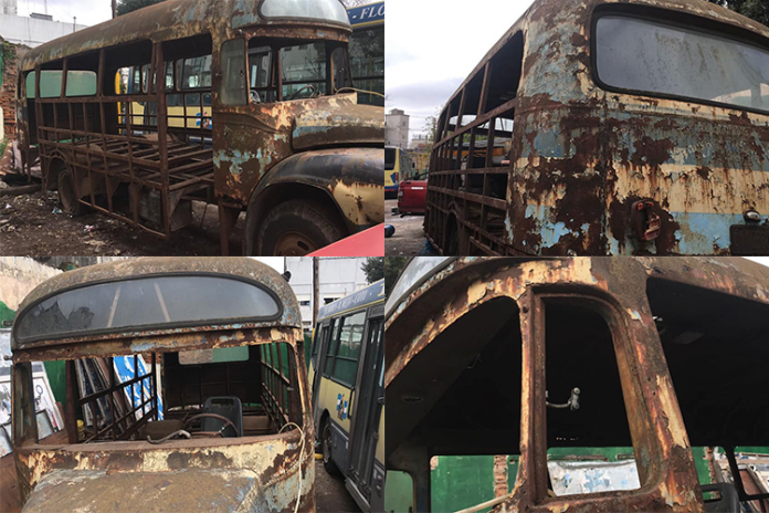 Se trata de un Bedford J6LZ1 carrocería Serra de 1966 que perteneció a la Línea 1 (Transporte San Cayetano) y que aún, detrás del óxido, se pueden ver sus colores originales.