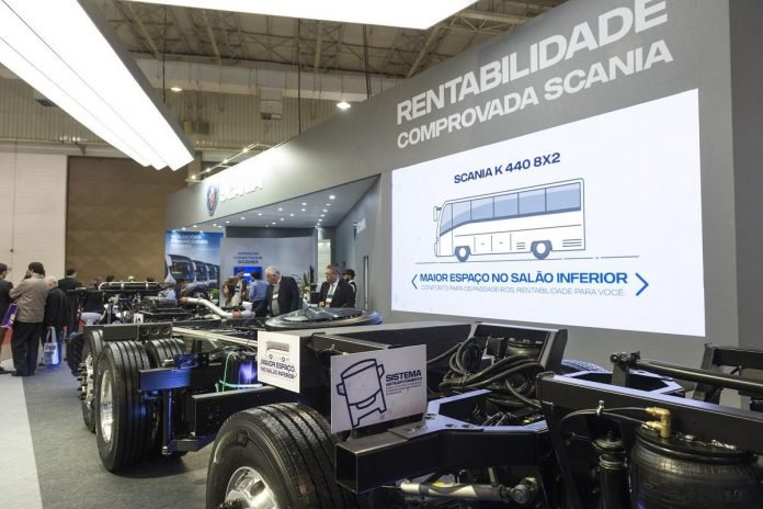 El primer semestre de 2018 para Scania fue muy positivo en sus negocios de autobuses. En los últimos años, se ha producido un crecimiento del 14% con respecto al mismo período del año anterior, cuando 249 vehículos se comercializaron en el segmento por encima de las 8 toneladas. En el stand de la feria Lat.Bus, la marca dio énfasis al chasis K 440 8×2, el más vendido del nuevo segmento de carreteras con carrocerías de 15 metros. Esta versión dejó de ser tendencia a participar con un porcentaje muy expresivo en el segmento. El año pasado, el 40% de los chasis de carretera comercializados por Scania fueron de esta configuración.