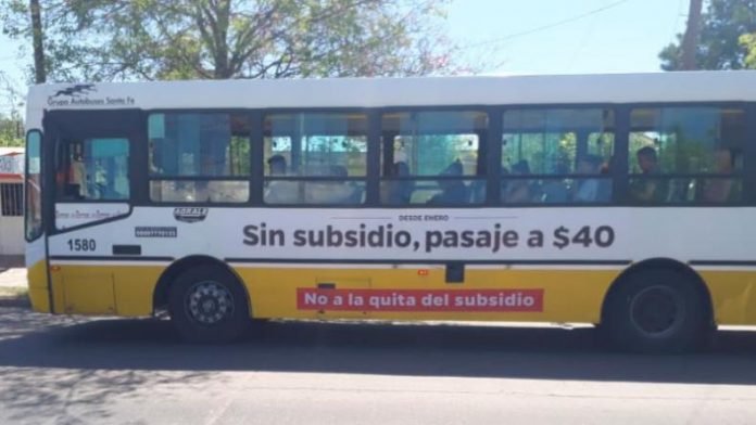 “Desde enero: sin subsidio, pasaje a 40 pesos”; “Desde enero: Buenos Aires 13 pesos, Acá 40 pesos”, advierten las empresas de transporte urbano. La Federación Argentina de Transportadores por Automotor de Pasajeros (FATAP) encabeza la medida.