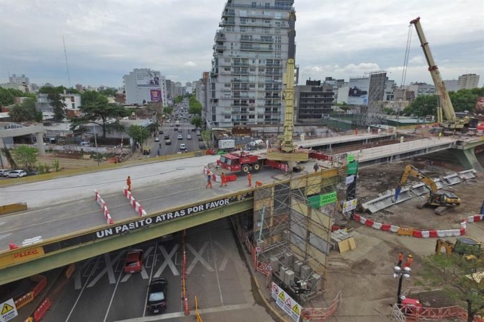Para proteger a las casas linderas se colocaron mamparas móviles de 3 metros de altura. La obra ya está avanzada en más de un 46%: hicieron el 90% de los pilotes, el 89% de los cabezales, el 80% de las columnas y el 18% de las vigas.