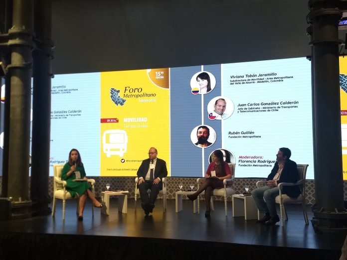 #ForoMetropolitano «Tener certeza en los tiempos de viaje y de espera es un paliativo para los usuarios del transporte público» Juan Carlos González Calderon, Jefe de Gabinete del Ministerio de Transporte y Telecomunicaciones de Chile. @MTTChile pic.twitter.com/5SIm9I5PvC