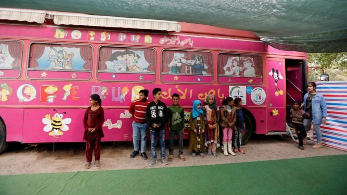 La sucesión de conflictos armados en Irak y la desintegración de los sistemas estatales ha dejado a numerosos niños iraquíes sin poder asistir a clase. En Bagdad, activistas de la sociedad civil han fletado un autobús-escuela que trata de proporcionar educación a algunos de estos menores.