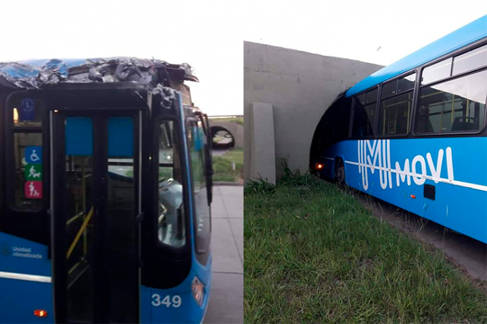 El colectivo estaba fuera de servicio y evidentemente el chofer no calculó que la altura del túnel no era suficiente para que la unidad pudiera pasar.