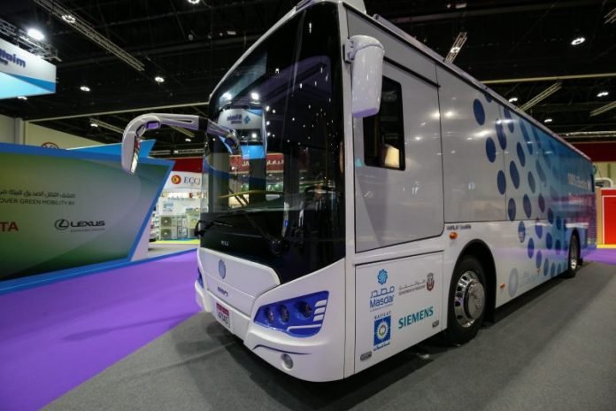 Masdar (también conocida como Abu Dhabi Future Energy Company) es responsable del proyecto, en colaboración con el Departamento de Transporte de Abu Dhabi (DoT). El primer autobús eléctrico en Abu Dhabi sirve una ruta entre el centro comercial Marina Mall, la estación central de autobuses de Abu Dhabi y la ciudad de Masdar. Hasta finales de marzo, el viaje será gratuito. El DoT de Abu Dhabi participó activamente en la fase piloto del Eco-Bus, que llevó a cabo pruebas exhaustivas del rendimiento técnico del vehículo y de la experiencia del usuario. Siemens proporcionó el sistema de tracción Eco-Bus , que incluye un motor PEM sin engranajes, mientras que Hafilat diseñó y construyó el autobús.. El primer bus eléctrico de Abu Dhabi tiene un cuerpo de aluminio liviano y un sistema de enfriamiento por agua desarrollado para optimizar la vida útil y la eficiencia de la batería, incluso cuando la temperatura exterior es máxima (una situación bastante común en la región …).