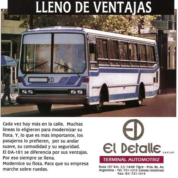 Paralelamente aparece el modelo OA 105, de piso bajo, con el cual se inicia otra etapa del transporte urbano en el país, dando un paso importante hacia la mejora del acceso y confort de los pasajeros. La empresa se presentó en quiebra en 2006, luego de haber producido 5.944 vehículos desde 1987.
