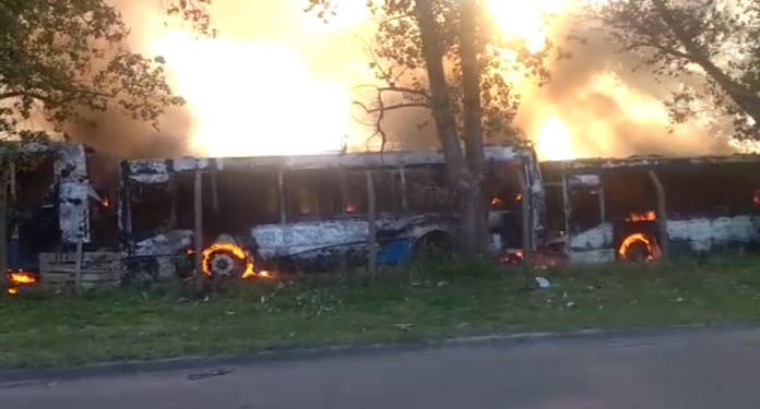 Linea 165: Se incendiaron 20 colectivos en la terminal