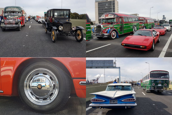A las 9 am comenzaron a llegar los vehículos y durante la espera, los conductores y acompañantes comenzaron a descender y recorrer la «Autoclásica improvisada» a lo largo del trazado de la autopista.