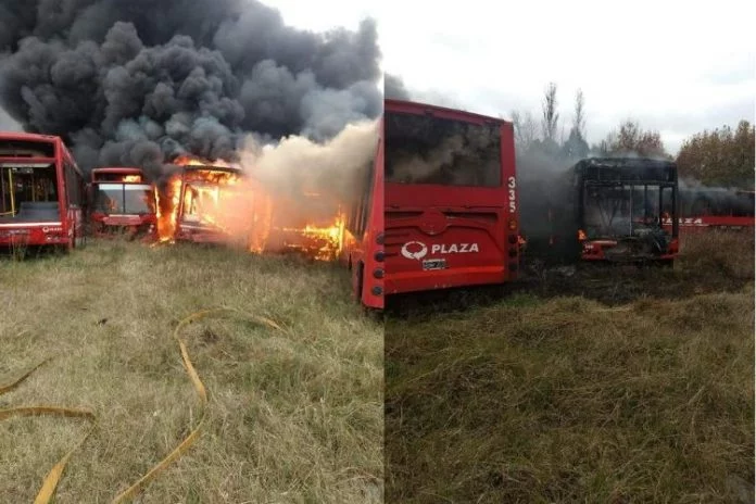 Un impresionante incendio se registró ayer en un predio que pertenecía a la empresa Ecotrans, en Merlo, y arrasó con 16 colectivos que se encontraban allí. No se reportaron heridos.