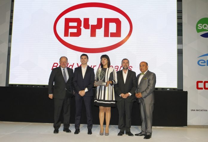 BYD Chile fue reconocida con el Premio de Electromovilidad Fidelmov 2019, gracias al positivo impacto que está generando su operación en desarrollo de la electromovilidad en Chile, con el proyecto de “los primeros 100 buses eléctricos para Chile”. El galardón, que fue entregado por Fundación Recyclápolis en la primera Feria Internacional de E-Movilidad (Fidelmov) del país, destacó el rol innovador de la compañía en el transporte público nacional, recordando desde la presentación del primer bus eléctrico en mayo de 2016 hasta los 183 buses 100% eléctricos que convirtieron a Chile en el país con la mayor flota de buses eléctricos después de China.