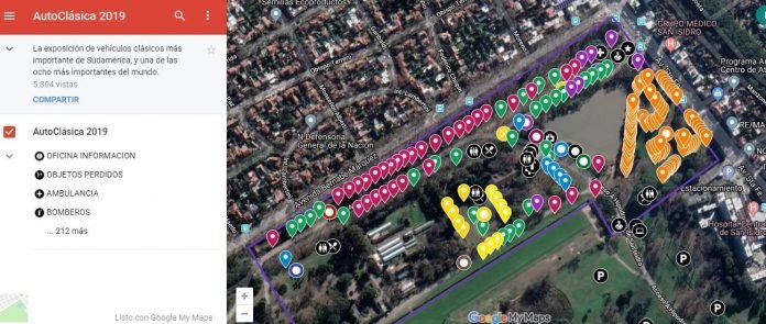 Así será la disposición de los stands y clubes de vehículos. Con este Google Maps podrás ubicarte en tiempo real dentro de la muestra.