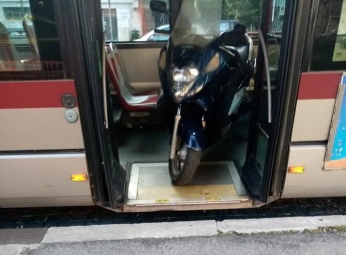 Un chofer de colectivos de Roma hizo bajar a sus pasajeros para poder trasladar en el vehículo su motocicleta Honda Silver Wing 400.