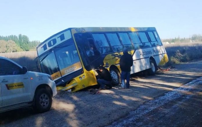La tierra de una calle de Neuquén cedió ante el peso de un colectivo y la unidad terminó hundida sobre el canal paralelo. Todo ocurrió esta mañana, cuando el rodado que cumple el servicio del ramal 101 salía de la base de Autobuses Santa Fe para iniciar su recorrido habitual.