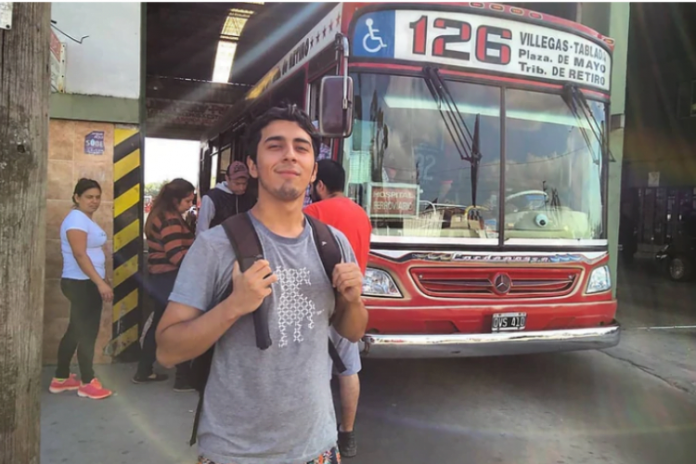 El joven disfruta de la experiencia de tomarse por primera vez un colectivo eléctrico de la Línea 59 o de subirse a un “Falcón Uber” para adentrarse en las calles tierra de los barrios más marginales que están sobre la ruta 3.