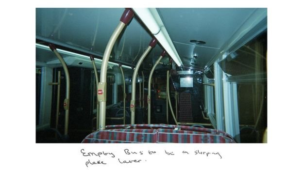 «Un autobús vacío es un sitio para dormir más tarde», dice una foto que tomó Sunny.