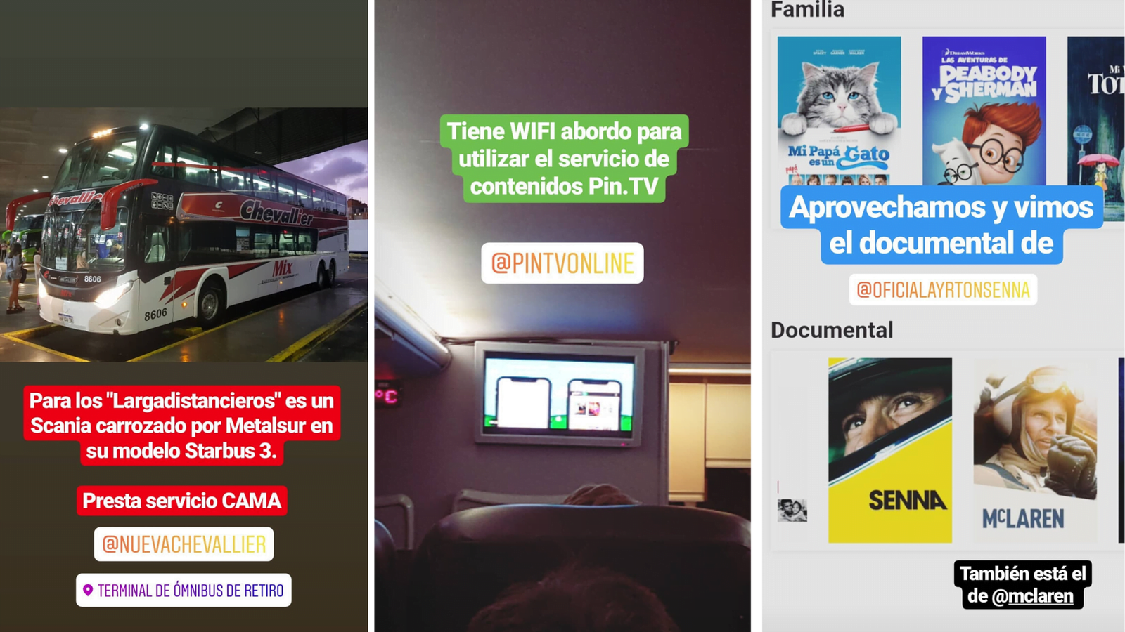 Durante el viaje, pudimos conectarnos a su servicio de entretenimiento a bordo Pin.TV y aprovechamos para ver el documental de Ayrton Senna, el piloto de Fórmula 1 brasileño tres veces campeón del mundo.