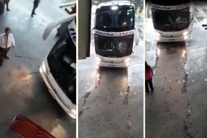 Sucedió en la Terminal del Talar de Pacheco. Se trata de una unidad moderna perteneciente a Flecha Bus. Según lo que cuentan algunas personas que estaban en ese momento en el lugar, al micro se le trabó la caja automática y en vez de salir en R (Reversa) terminó saliendo en D (Directa).