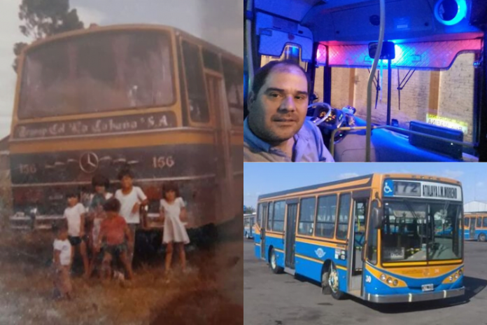 Es el caso de Hernán Alvarado que nos compartió una foto de su infancia. Se lo ve junto al colectivo que manejaba su tío de la Línea 242 – Interno 156 de la empresa La Cabaña.