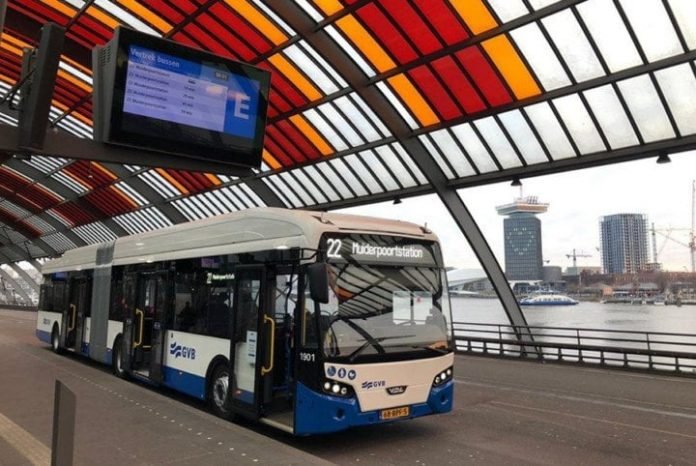 Destinados al transporte urbano en Amsterdam, los 31 autobuses VDL Citea Electric están equipados con un pantógrafo en el techo para una carga rápida y la última tecnología de batería.