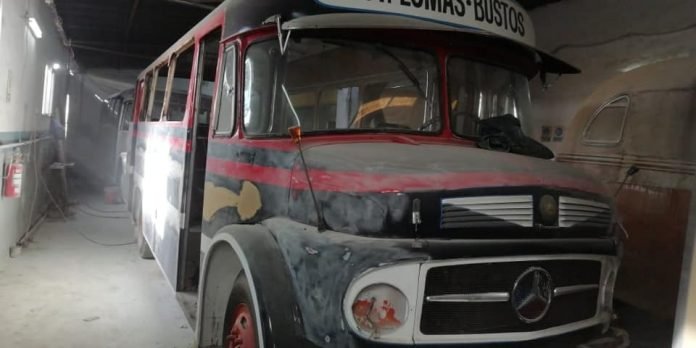 Un particular se encuentra restaurando un colectivo que tendrá los colores de la Línea 64. Se trata de un Mercedes Benz 1114 carrozado por El Indio de 1976.