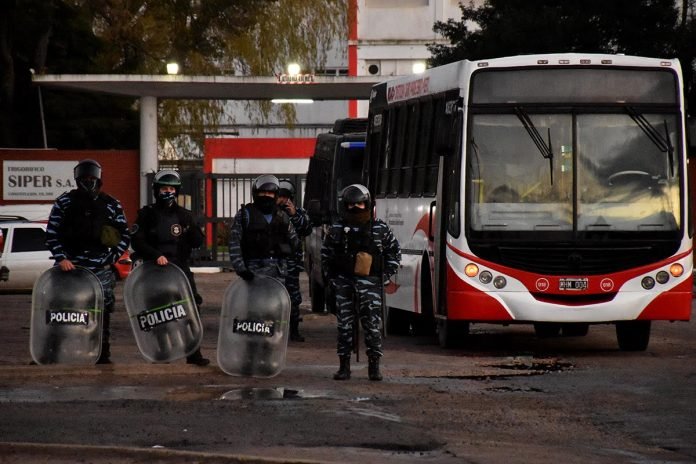 Por su parte, otro de los choferes afirmó que la conducción de la UTA llegó al lugar con una “patota”. “Amenazaron de muerte a los compañeros, vinieron con un grupo de matones a sueldo”, afirmaron y acusaron que al menos cuatro trabajadores resultaron heridos, dos de ellos por disparos de bala de goma efectuados por Infantería, que también está apostada en el lugar.