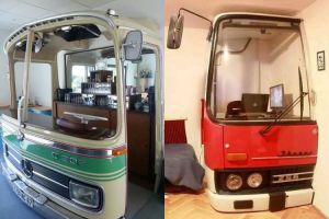 Los fanáticos de los bondis que «estacionaron» uno dentro de sus casas