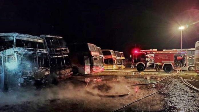 Los bomberos que se aprestaron a este depósito de Flecha Bus trabajaron durante dos hora y media para apagar completamente el fuego y, según comentaron, no hubo heridos ni víctimas durante la jornada.