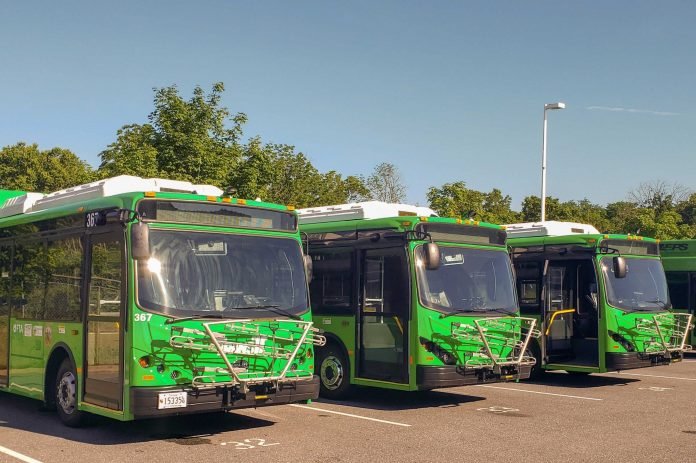 Los autobuses, que superan los requisitos de Buy America, se compraron con dinero de la subvención del programa de subvenciones de baja o nula emisión (baja-nula) de la Administración Federal de Tránsito.