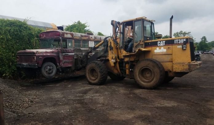 Un video muestra como un antiguo autobus Ford, luego de pasar largo tiempo en un depósito de chatarra en Michigan, Estados Unidos, termina siendo compactado para posteriormente ser vendido por kilo de metal.