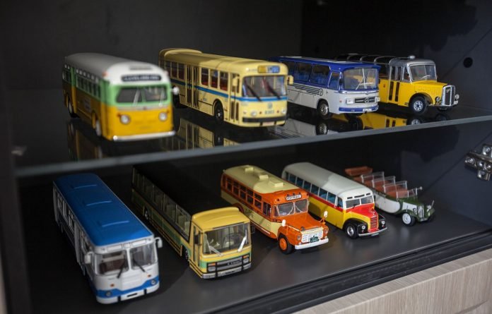 Un fanático se armó una vitrina-biblioteca y «estacionó» más de 100 réplicas de colectivos urbanos, históricos y de larga distancia en sus estantes.