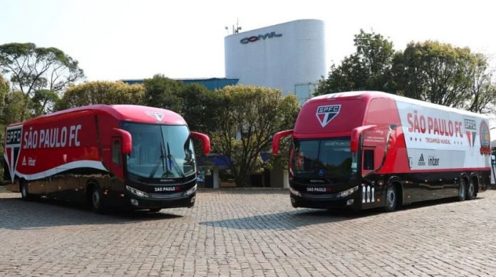 Comil Ônibus SA, presenta los vehículos adquiridos por São Paulo Futebol Clube para el transporte de equipos masculinos, femeninos y de baloncesto. El Club adquirió dos cuerpos, cuya pintura fue elegida mediante votación por la multitud tricolor.