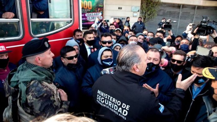 Luego de la muerte de un chofer de la línea 218 en Virrey del Pino en mano de un delincuente, el ministro de seguridad bonaerense intentó hablar con la prensa y contar sobre la negociación con choferes que cortaban General Paz y Alberdi.