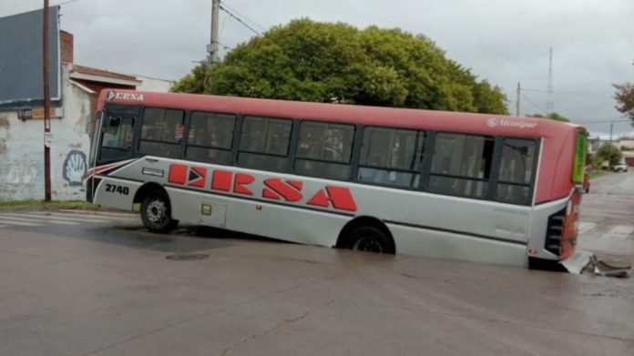 Ocurrió en barrio Villa Cabrera de la ciudad de Córdoba. Debajo del colectivo se observa un desagüe que producto de las lluvias al parecer colapsó.