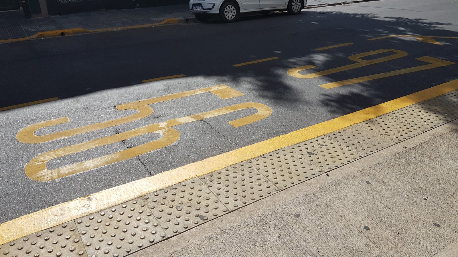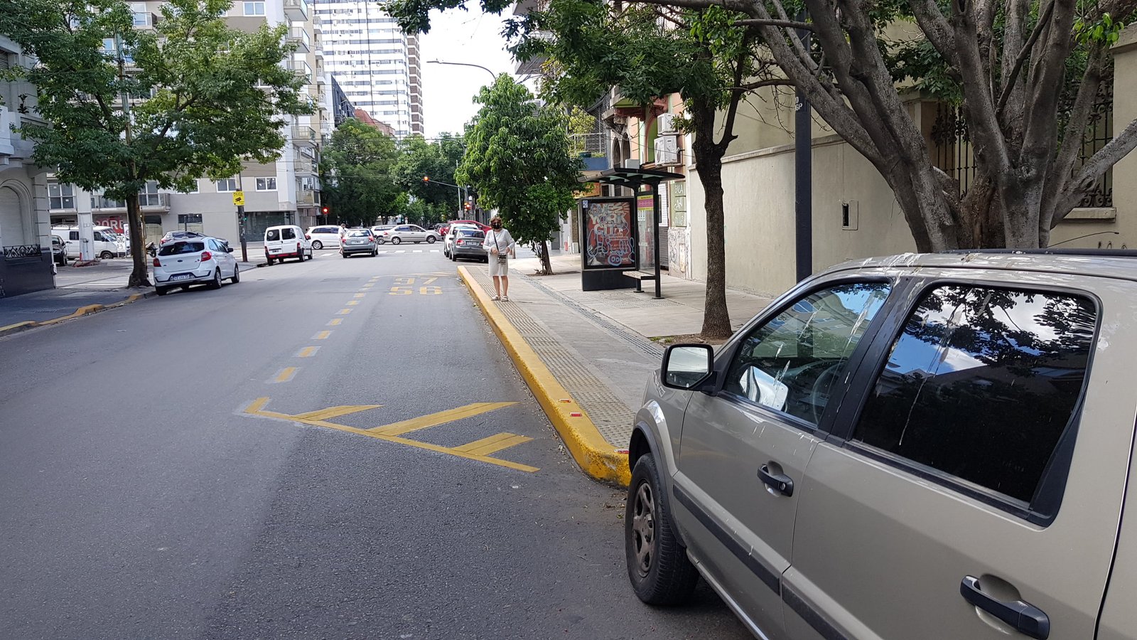 Si bien la Ley 25.644 obliga a todas las líneas de colectivos a tener unidades accesibles para personas con discapacidad, de nada sirve si las paradas están obstruidas por autos estacionados.