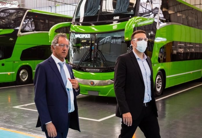 Daniel Scioli anunció que Marcopolo desembarcará en Santa Fe y fabricará micros doble piso en Argentina