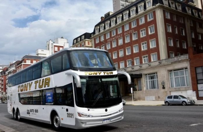 Fue presentado en Mar del Plata uno de los modernos micros , que la empresa Tony Tur sumará por estas horas al parque automotor que une Mar del Plata con Buenos Aires y viceversa.