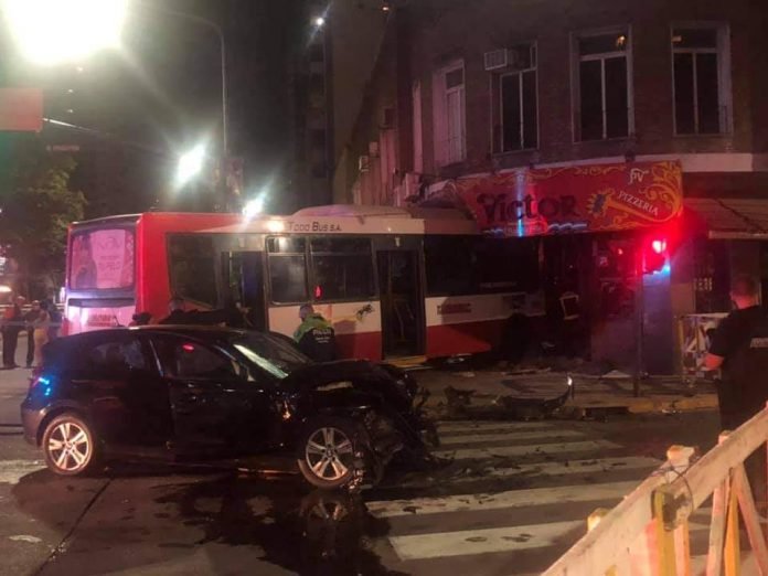 Un colectivo se incrustó en una pizzería de Vicente López tras chocar con un BMW que pasó en rojo