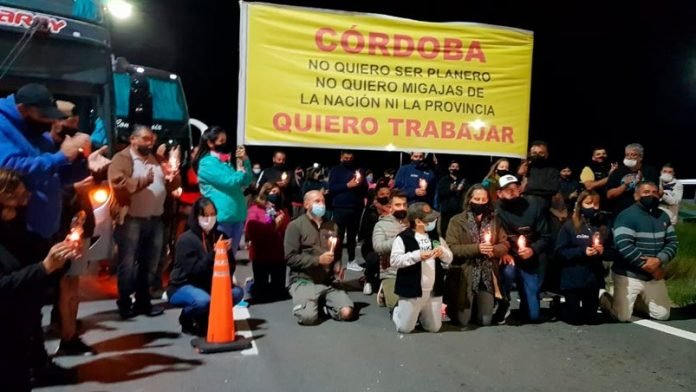 Hace 11 días protestan en la autopista arrodillados: le piden al Gobierno Provincial y Nacional que les permitan transitar. Aseguran que no tienen para darles un plato de comida a sus hijos y que el sector «no da más».