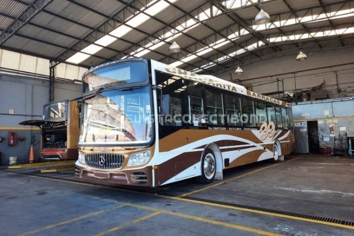 La unidad de la imagen es el nuevo interno 7, Mercedes Benz carrozado por La Favorita en su modelo con parrilla frontal, bautizado por nuestro medio como «AMG».