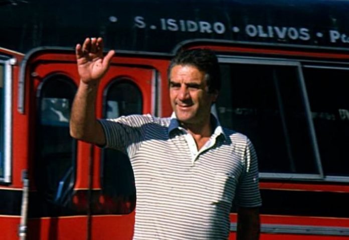 La foto completa se puede ver que detrás de él pasa un Mercedes Benz 1114 interno 53 con su característico color rojo con detalles en negro de la original empresa Expreso San Isidro ESISA.