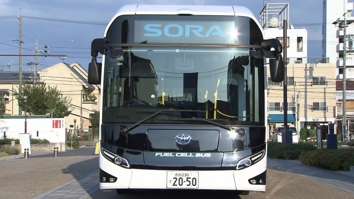El autobús H2 Toyota Sora fue aprobado y lanzado al mercado a principios de 2018 . El Toyota Sora, de 10,5 metros de largo, se basa en el sistema de pila de combustible de Toyota (TFCS), desarrollado para el coche Mirai. Tiene capacidad para 79 personas, 22 sentadas y 56 de pie, y se puede utilizar como generador de electricidad si es necesario. Un enchufe en la parte trasera del autobús puede suministrar 9 kW de potencia durante más de 24 horas. De esta forma, apunta la empresa, se puede utilizar para evacuar escuelas y edificios o como fuente de alimentación para proporcionar electricidad para uso doméstico. La potencia máxima desarrollada por el motor es de 113 kW para dos unidades.