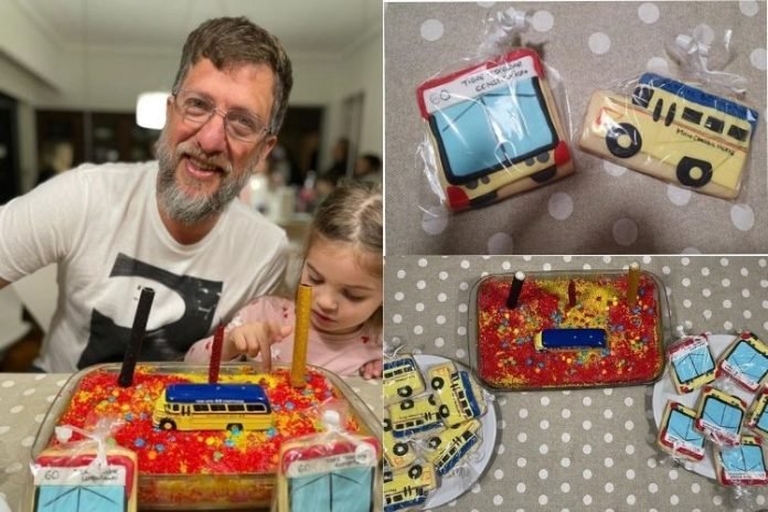 «Hoy cumplí 46 y me encontré con esta sorpresa. Una torta de bondis y cookies de colectivo».