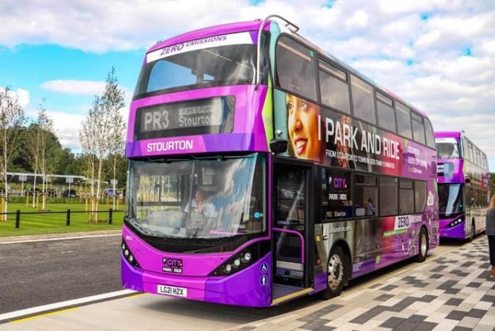 Con salidas cada 10 minutos, los nuevos buses de cero emisiones tardan menos de 15 minutos en trasladar a los automovilistas de manera silenciosa y sin emisiones desde la autopista M621 hasta el centro de la ciudad de Leeds.