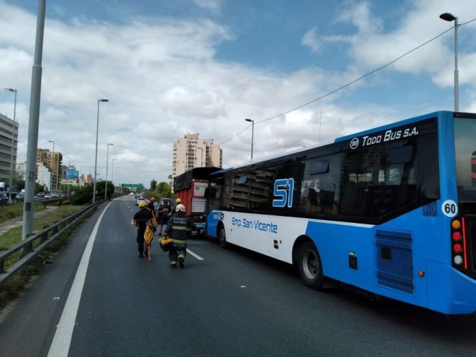 Ahora Au. 9 de Julio Sur y Alvarado. Choque entre una camioneta y un colectivo de la línea 51, que circulaba sin pasaje. Bomberos de la Ciudad inmoviliza al acompañante de la camioneta y obtura una pérdida en el tubo de gas pic.twitter.com/bt5uBuANfq @EmergenciasBA @CiudadDeBondis