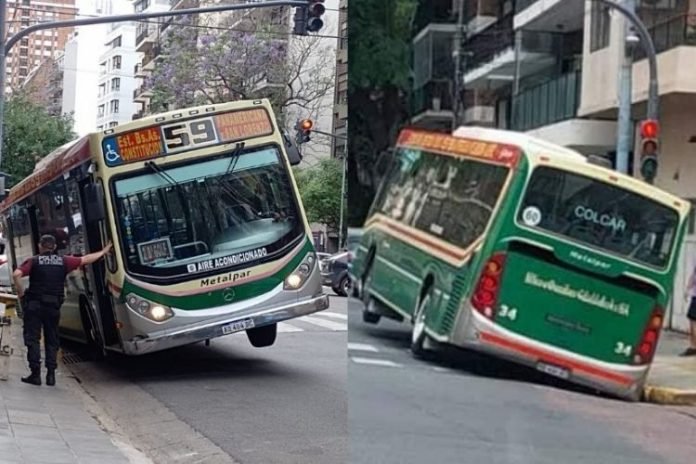 Lo cierto es que una de sus unidades, más precisamente el interno 34, quedó literalmente «en el aire» luego que se acercara al cordón en Av. Luis María Campos y Federico Lacroze para que un pasajero en silla de ruedas pueda descender de forma correcta y el asfalto cediera dejándole la rueda trasera dentro de un pozo y la parte delantera elevada.