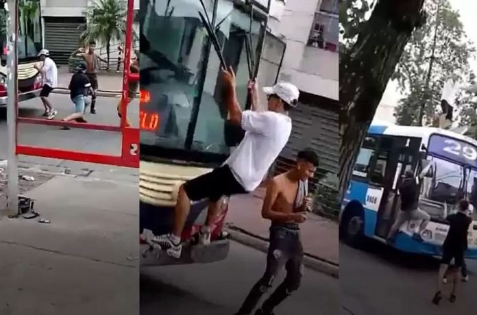 En Lanús un grupo de jóvenes cortó la calle para bailar y festejar el Año Nuevo, pero cuando un colectivo intentó pasar, porque ya era hora de que reanudaran sus actividades, no pudo hacerlo. Los festejantes le impidieron el paso y uno de ellos se le subió al techo para seguir la fiesta desde allí.