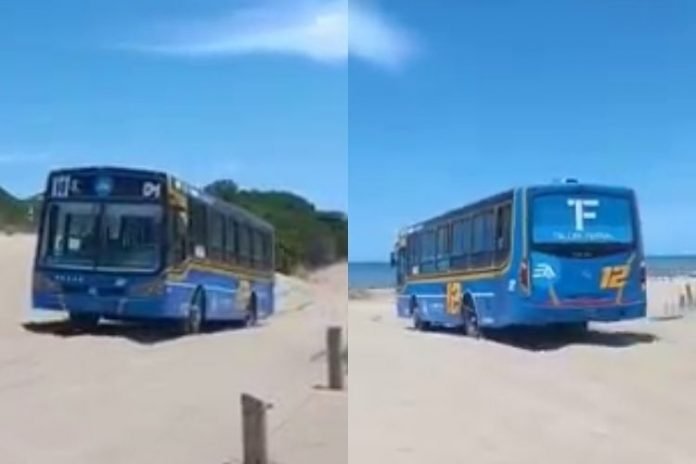 Un colectivo que perteneció a la Línea 172 porteña se lo vio (y filmó) recorriendo las playas de Mar Chiquita.
